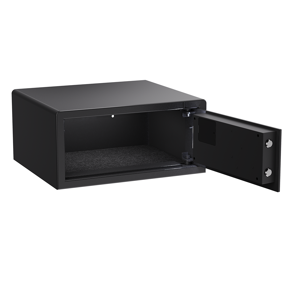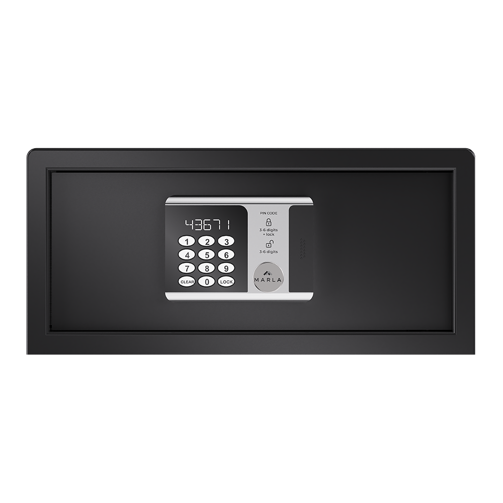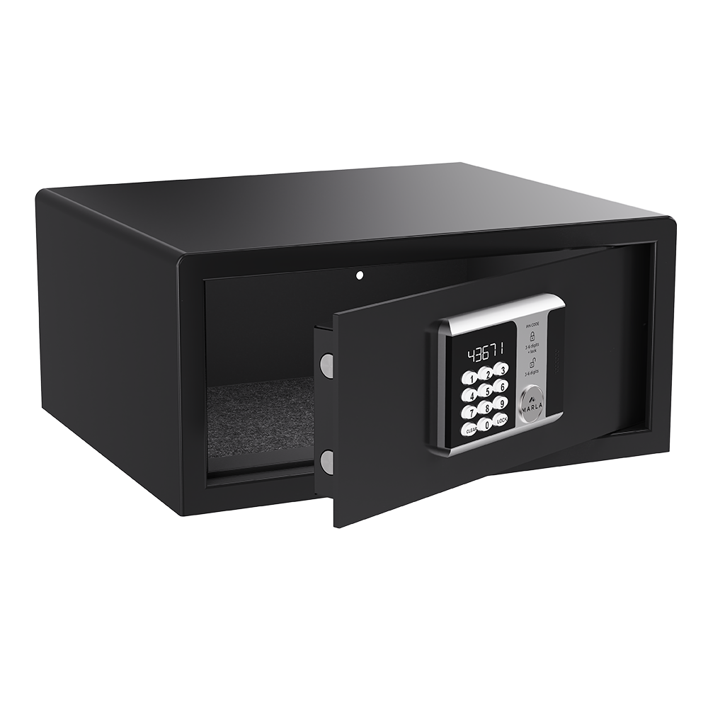 Marla EliteLine, otel odaları, ofisler, rezidanslar ve ticari alanlar için özel olarak geliştirilmiş, yüksek güvenlikli bir laptop tipi kasadır. 15 inç boyutuna kadar olan laptoplar ve değerli eşyalar için ideal iç hacme sahiptir. Modern tasarımı, gelişmiş güvenlik özellikleri ve kullanıcı dostu arayüzüyle, konuklarınıza güvenli ve şık bir deneyim sunar.